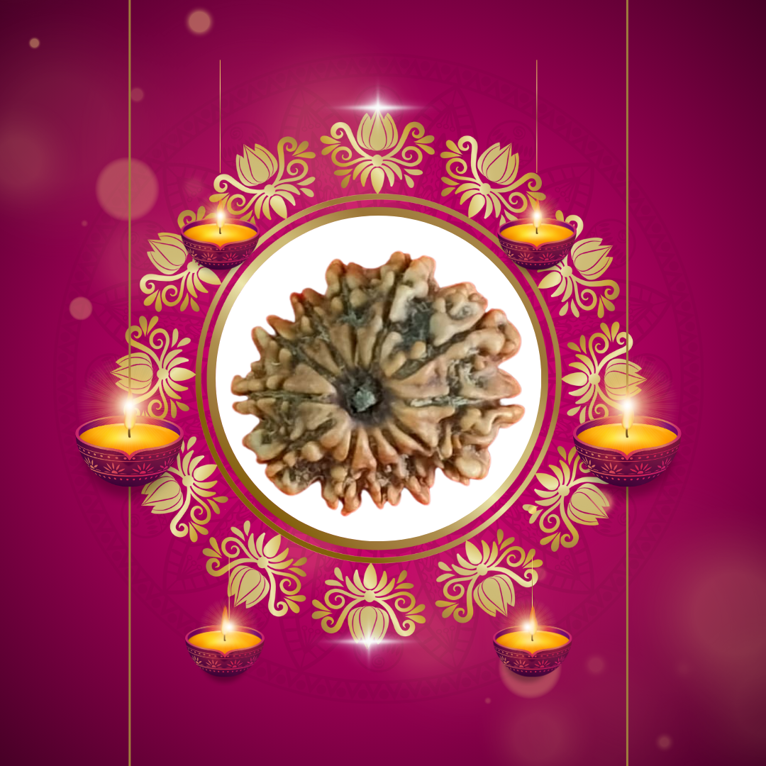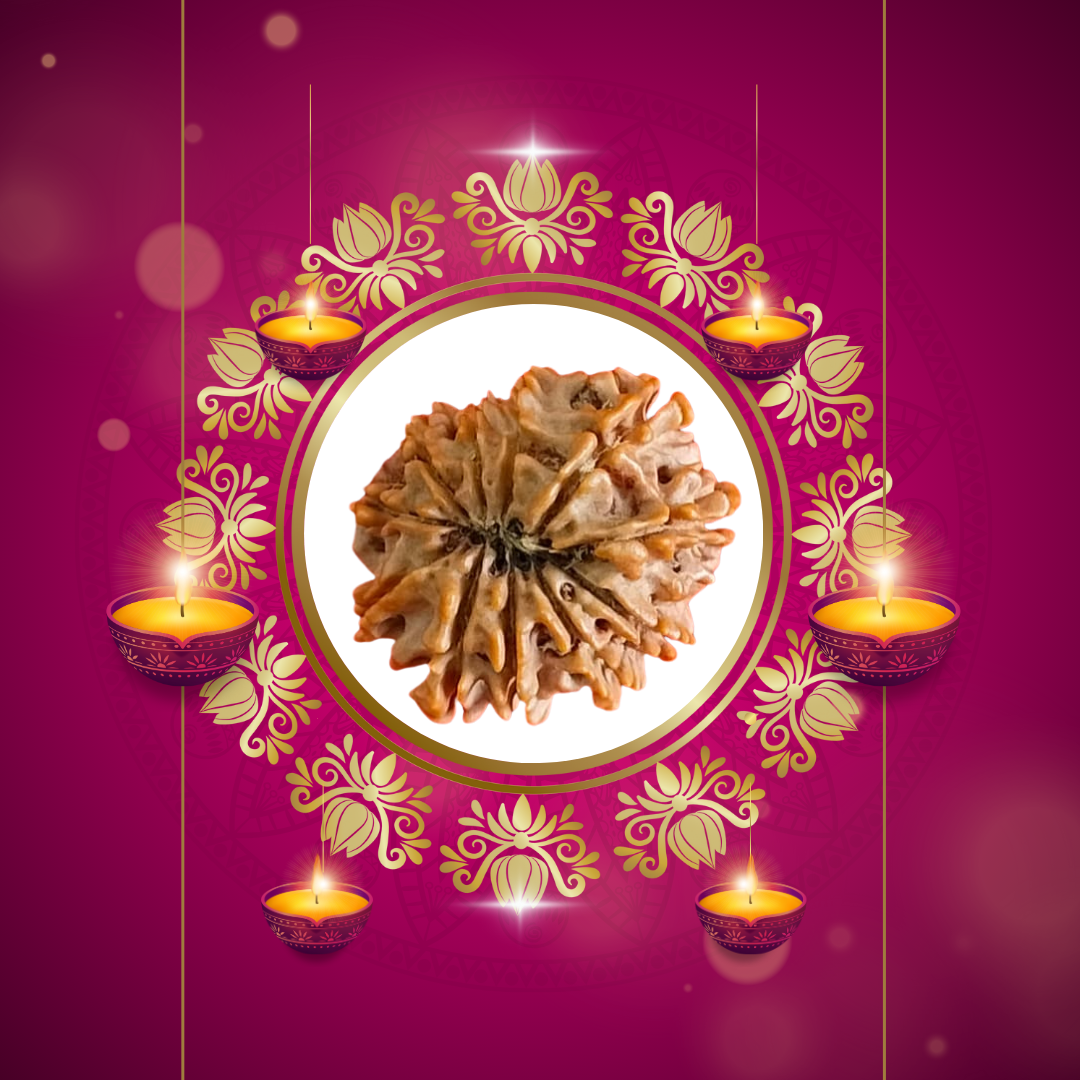 The 13 Mukhi Rudraksha represents Lord Indra, the king of gods, and symbolizes power, prosperity, and leadership. helps in achieving success, wealth, and recognition.